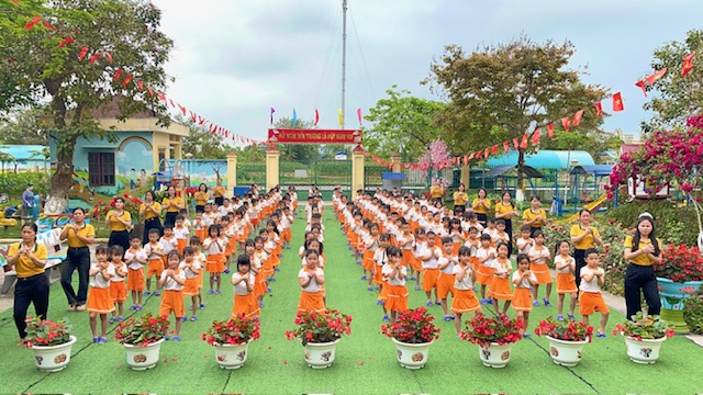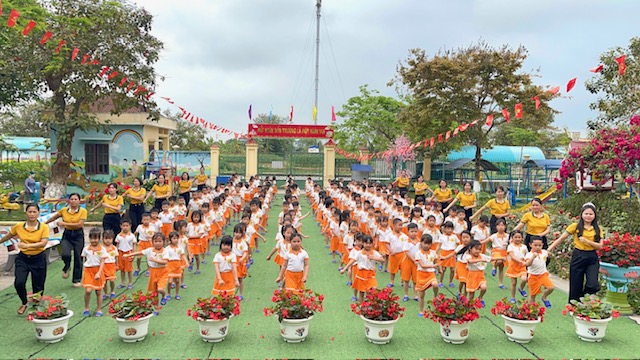 CÁC CON HỌC SINH TRƯỜNG MẦM NON NAM DƯƠMG ĐỒNG DIỄN THỂ DỤC SÁNG CHỦ ĐỀ GIAO THÔNG