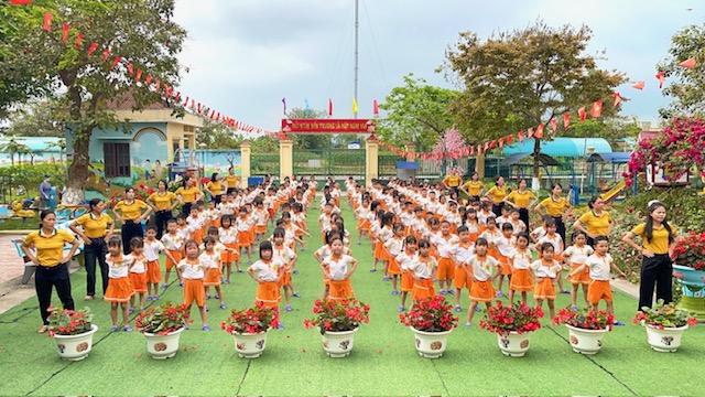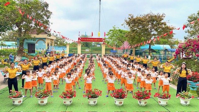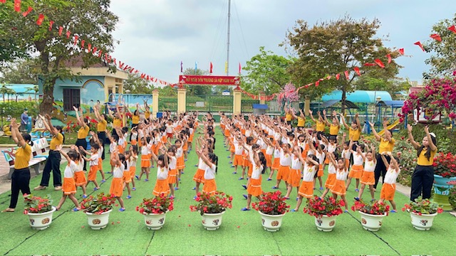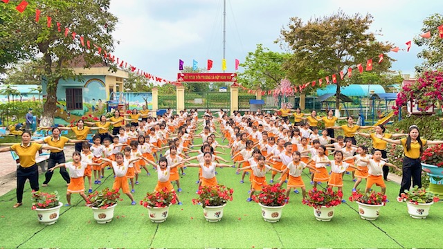 Dưới ánh nắng mai rực rỡ, các bé mầm non Nam Dương hào hứng tham gia buổi đồng diễn thể dục trên nền nhạc bài hát “Đi đường em nhớ”. Từng động tác vung tay, dậm chân nhịp nhàng theo lời ca giúp các con vừa rèn luyện thể chất, vừa khắc sâu bài học về an toàn giao thông. Những gương mặt rạng rỡ mô phỏng hình ảnh bé đi bộ trên vỉa hè hay chấp hành tín hiệu đèn giao thông đường bộ trông thật đáng yêu và tự tin. Tiếng nhạc vui tươi hòa cùng không khí sôi động đã tạo nên một khởi đầu ngày mới đầy năng lượng cho các bạn nhỏ. Hoạt động này không chỉ bồi đắp sức khỏe mà còn giáo dục ý thức tham gia an toàn giao thông cho trẻ một cách tự nhiên và hiệu quả nhất.