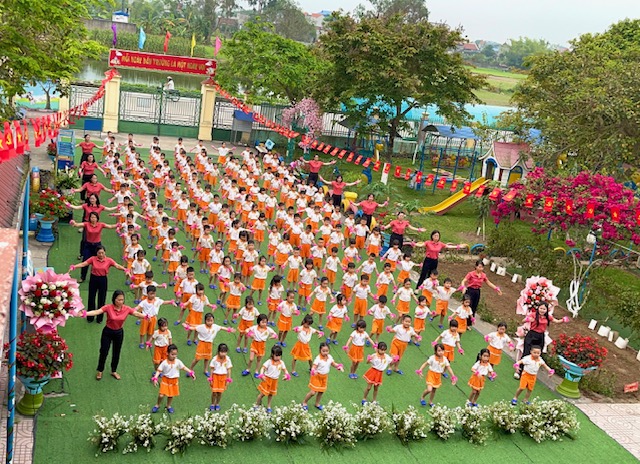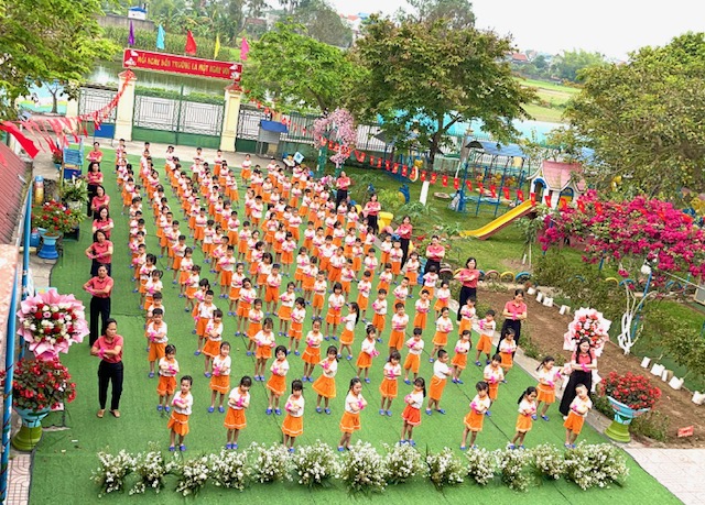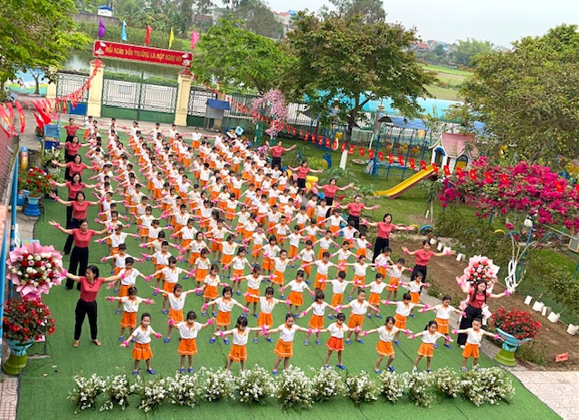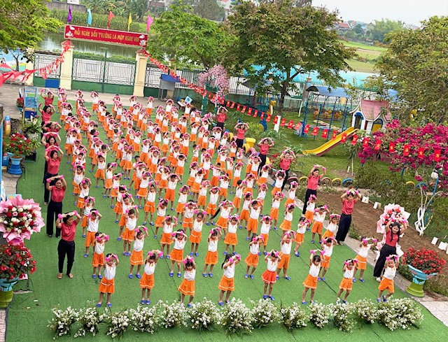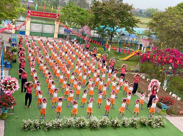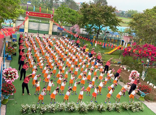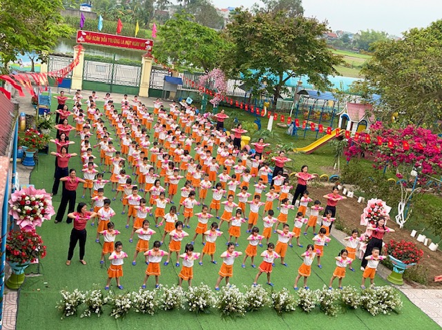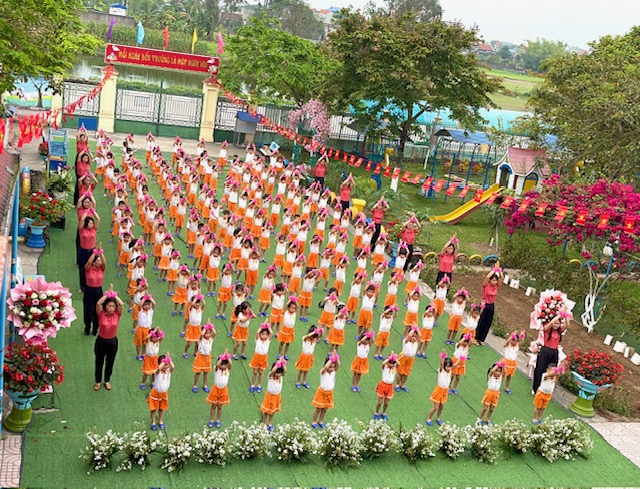 Bài đồng diễn thể dục buổi sáng với chủ đề “Gọi tên cảm xúc” của các bé mầm non Nam Dương diễn ra thật sôi nổi và tràn đầy năng lượng tích cực. Trên nền nhạc vui tươi, các con hào hứng thực hiện từng động tác tay chân nhịp nhàng kết hợp với những biểu cảm khuôn mặt vô cùng đáng yêu theo từng hiện tượng thay đổi của thời tiết như: nắng, mưa, sấm, chớp…. Qua từng điệu nhảy, các bé không chỉ được rèn luyện thể chất mà còn học cách nhận biết và gọi tên những cung bậc cảm xúc tự nhiên của bản thân. Những nụ cười rạng rỡ và sự tự tin của các “vận động viên nhí” đã tạo nên một không khí khởi đầu ngày mới đầy hứng khởi tại trường. Đây thực sự là một hoạt động ý nghĩa, giúp trẻ phát triển toàn diện cả về thể lực lẫn trí tuệ cảm xúc ngay từ bậc học đầu đời.