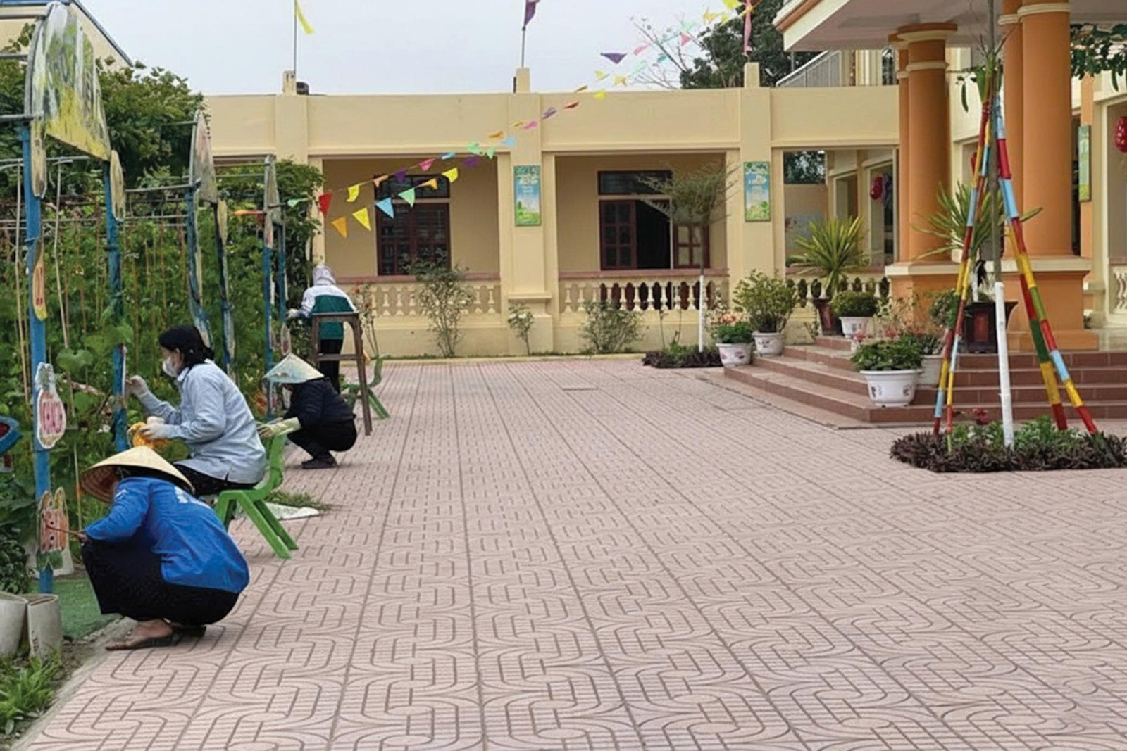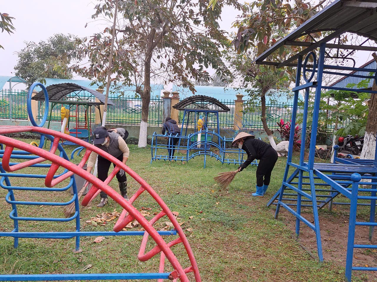 – Quét dọn toàn bộ các khu vực trong trường và khu vực ngoài cổng trường.