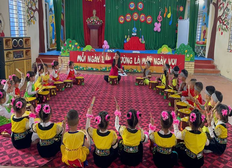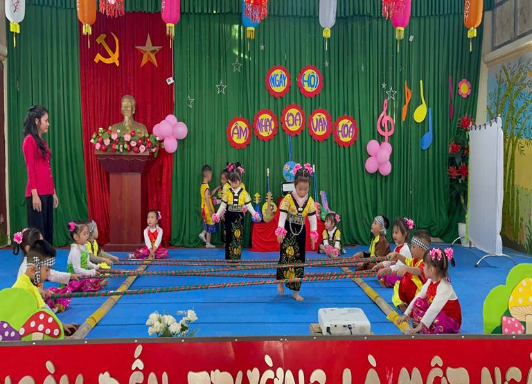 Hoạt động được tổ chức sinh động, hấp dẫn, tạo môi trường nghệ thuật phù hợp với đặc điểm lứa tuổi mầm non. Trẻ tích cực tham gia các tiết mục mang đậm bản sắc văn hoá của từng vùng miền như dân ca Bắc Bộ, điệu lý miền Trung, dân vũ Tây Nguyên, múa sạp,…Qua đó, trẻ mạnh dạn hơn khi biểu diễn trước tập thể, biết phối hợp với bạn bè và cảm nhận được vẻ đẹp đa dạng của văn hoá Việt Nam.