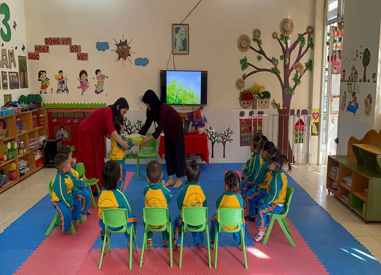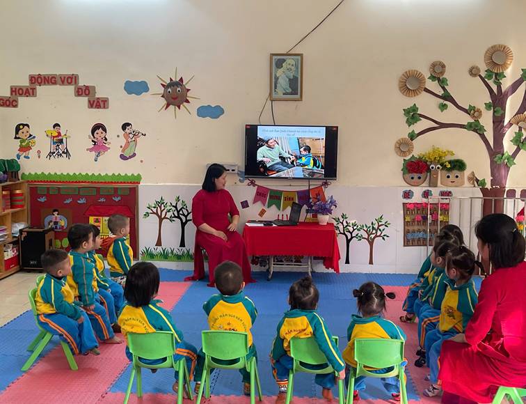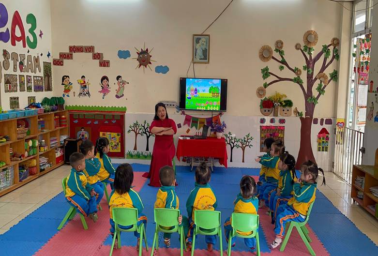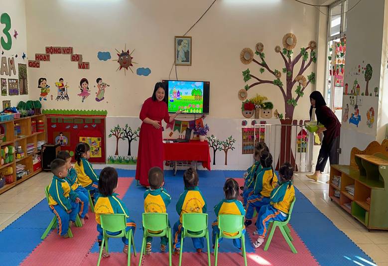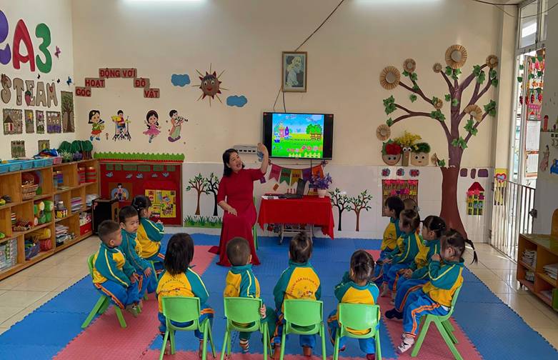 Thông qua các bài thơ, bài hát và các tình huống quen thuộc trong cuộc sống hằng ngày như chào ông bà, bố mẹ, thầy cô, chào bạn bè khi đến lớp và khi ra về, cô giáo đã khéo léo hướng dẫn trẻ hiểu được ý nghĩa của lời chào, biết khi nào cần chào hỏi và chào như thế nào cho đúng lễ phép. Trẻ được quan sát tranh, xem tình huống minh họa và thực hành trực tiếp các hành vi chào hỏi, từ đó ghi nhớ và mạnh dạn thực hiện. Trong suốt tiết dạy, cô luôn động viên, khuyến khích trẻ mạnh dạn nói lời chào, nhắc nhở trẻ xưng hô đúng mực, thể hiện thái độ lễ phép, thân thiện. Qua tiết học, trẻ không chỉ được rèn luyện kỹ năng giao tiếp cơ bản mà còn hình thành thói quen chào hỏi lễ phép, góp phần giáo dục nề nếp, hành vi văn minh và phát triển tình cảm, kỹ năng xã hội cho trẻ ngay từ những năm đầu đời.
